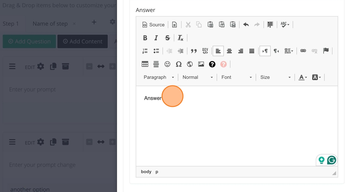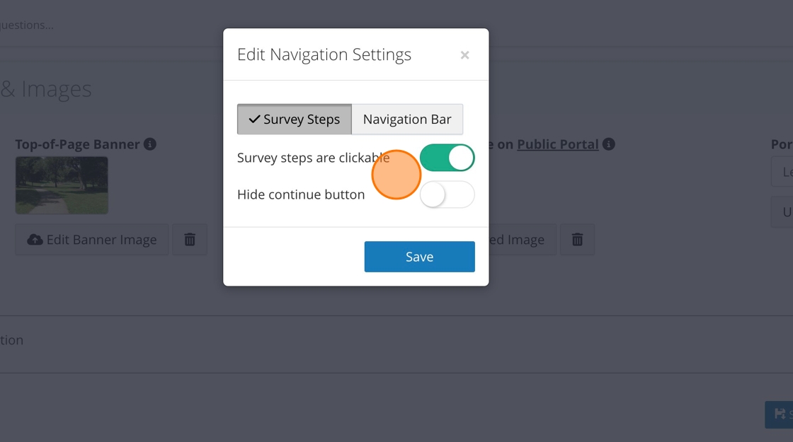 6. You can make the steps/tabs clickable or unclickable for Survey Steps. You can also choose to hide the continue button.