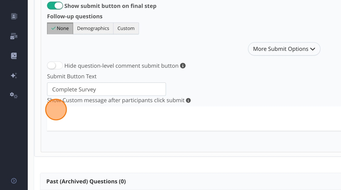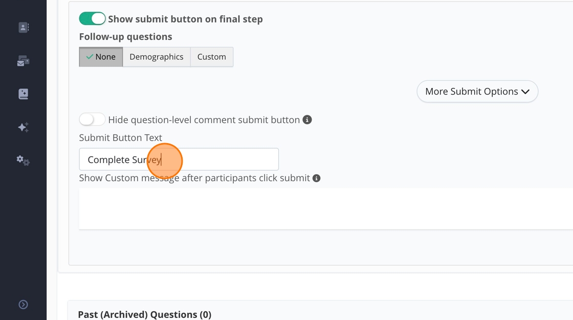 7. You can hide the continue button in the navigation bar. We do not recommend this for long surveys.