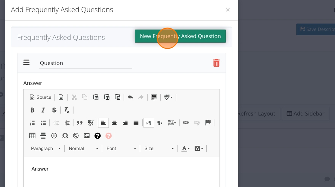 6. Click "New Frequently Asked Question" to add more sections and follow the steps above.