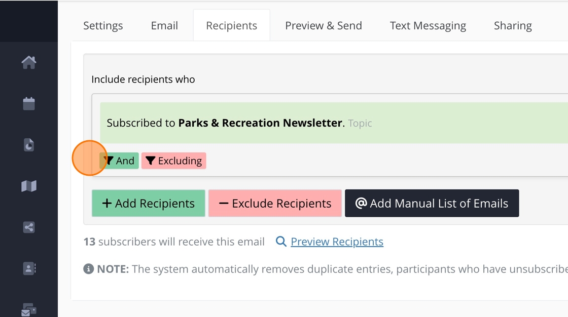 29. You can filter these recipients to be more nuanced with who receives the email.
