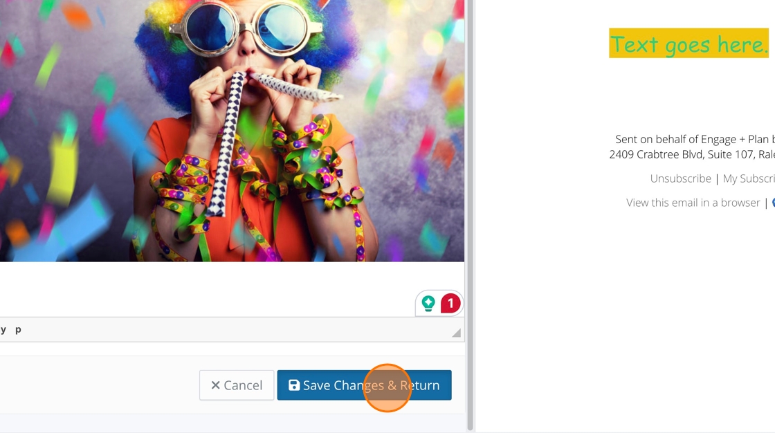 17. This opens a text box to add text, images, hyperlinks and tables. Be sure to click "Save Changes & Return" when done.