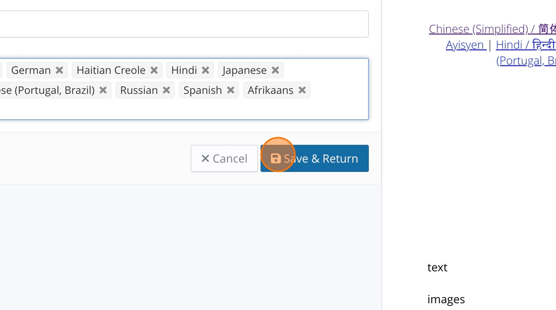 22. To add additional languages, click the space next to the last language and then search for the language you need to add.