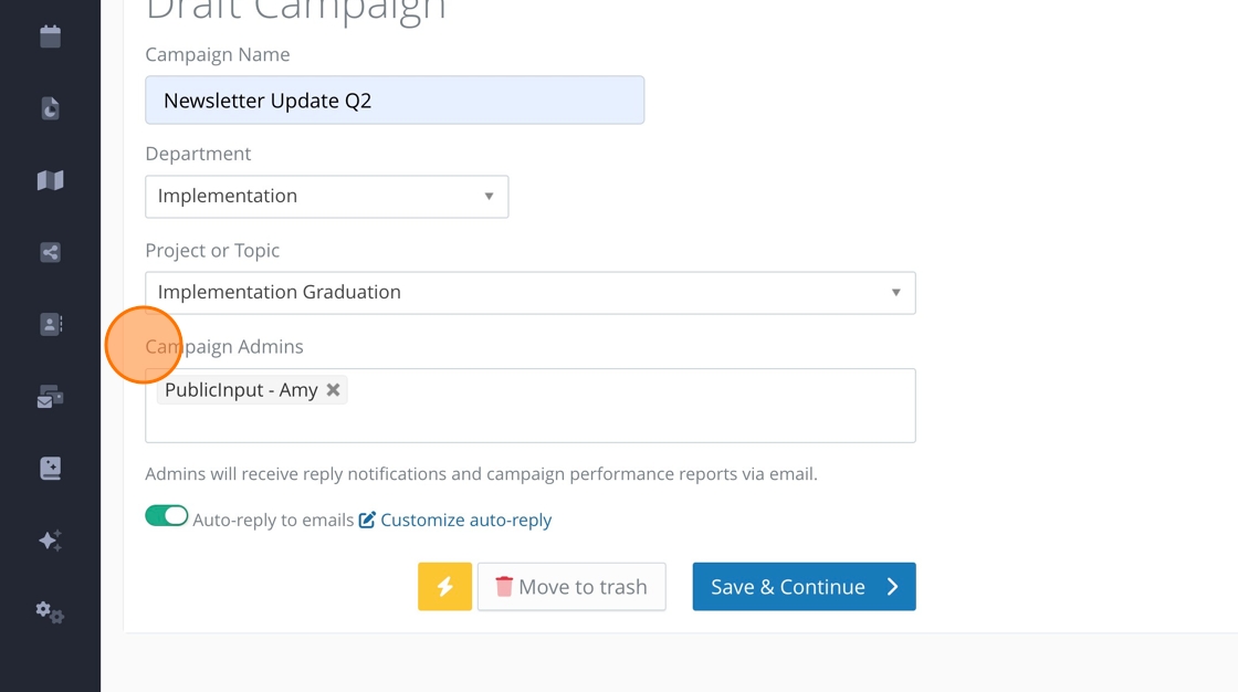 8. Your name will automatically appear as the campaign admin. Feel free to add more admins as needed.