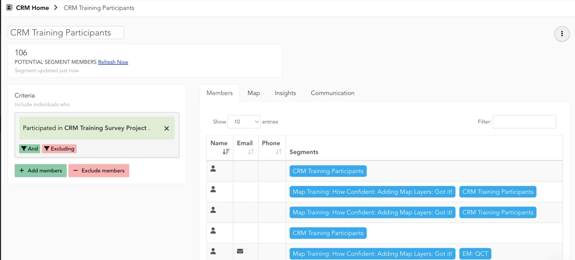 10. You can click "No thanks" to go back to the CRM page or "Open" to view the segment.